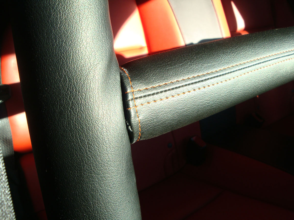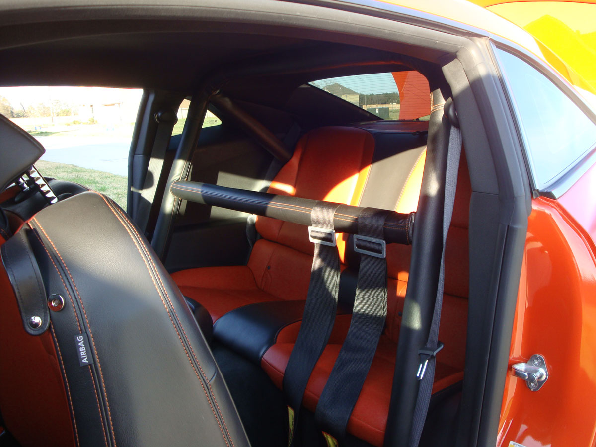 Here are some pics of the new roll cage and harness. The fit and finish are great, and they even matched the interior's orange stitching.