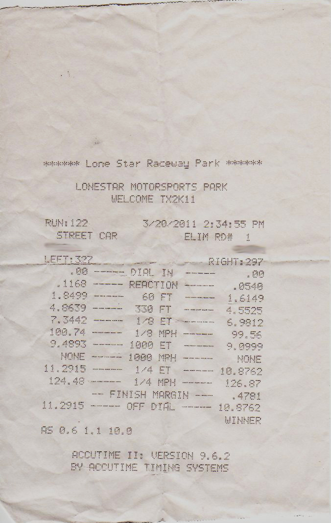 I lost the next round to a car that was running 9s, but I didn't care. Getting into the 10s for a complete amateur like me was amazing!