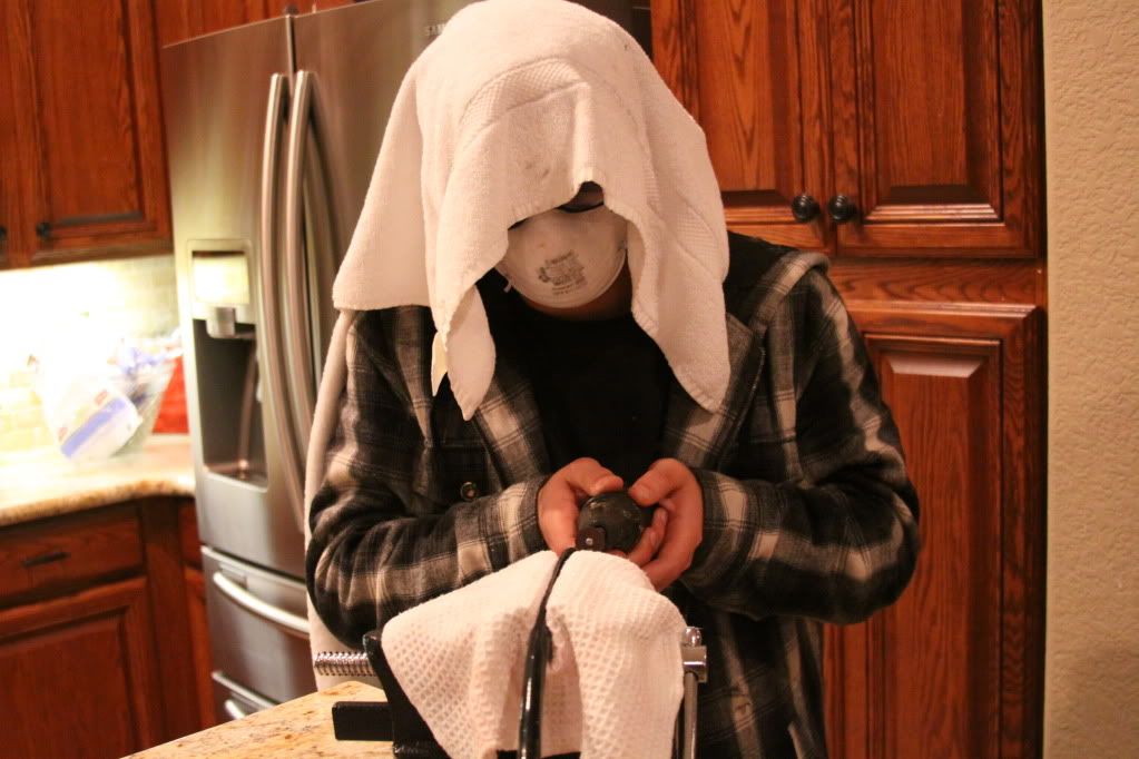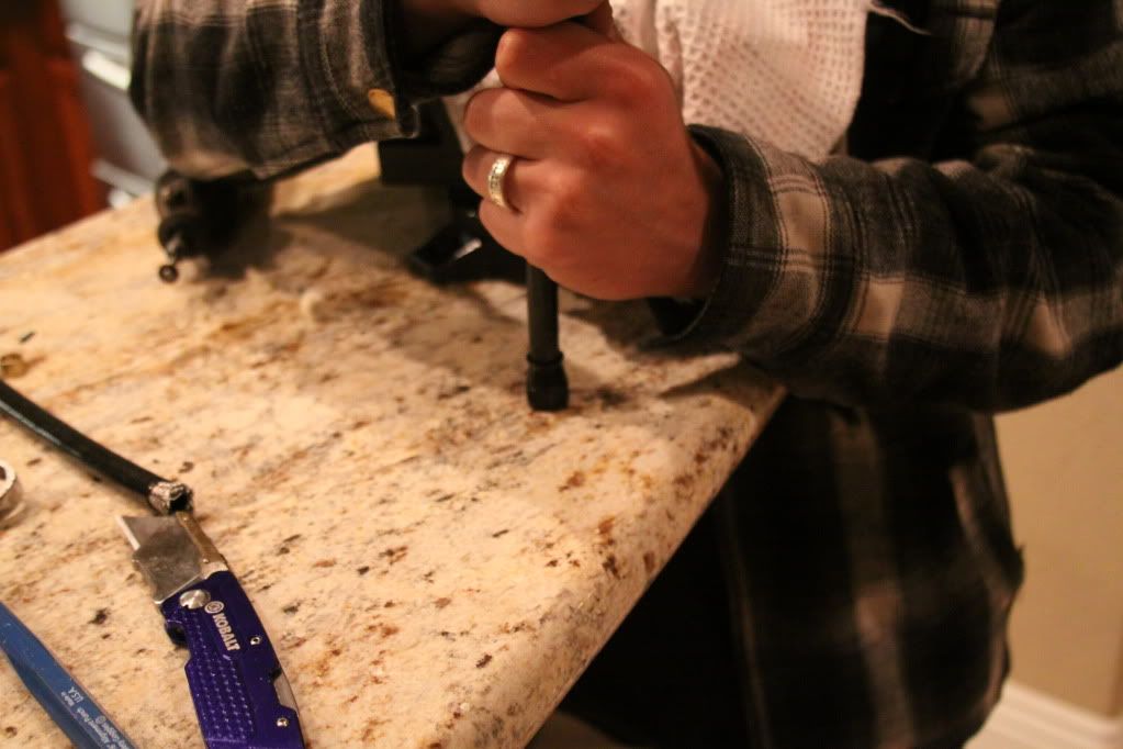 Next, with a box knife, I cut the outer layer. Side note...... the fitting is on backwards but don't tell anyone,
