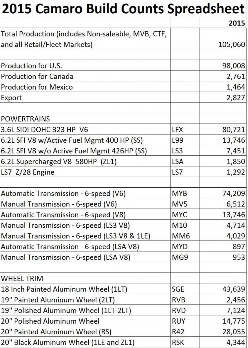 Anyway, I posted what Chevrolet sent me in regards to the Commemorative Editions with their breakdown. They couldn't break down color, nor transmission counts at the time (I wish they would). Maybe Fbodfather can get that info as well.... then he'd be my hero! What info we did have on the Commemorative Editions use to be posted at the first page of this entire thread, but I guess it was deleted when the new 2015 chart from mlee came out - even though it left that extra info out of the breakdown for the Commemorative Editions... so I'll repost that info here for those who do want to know: