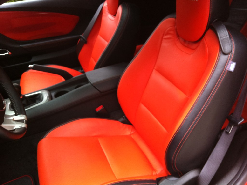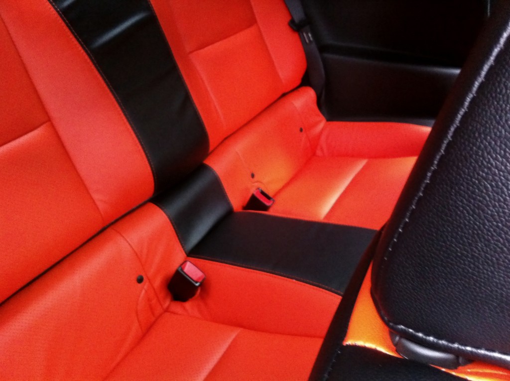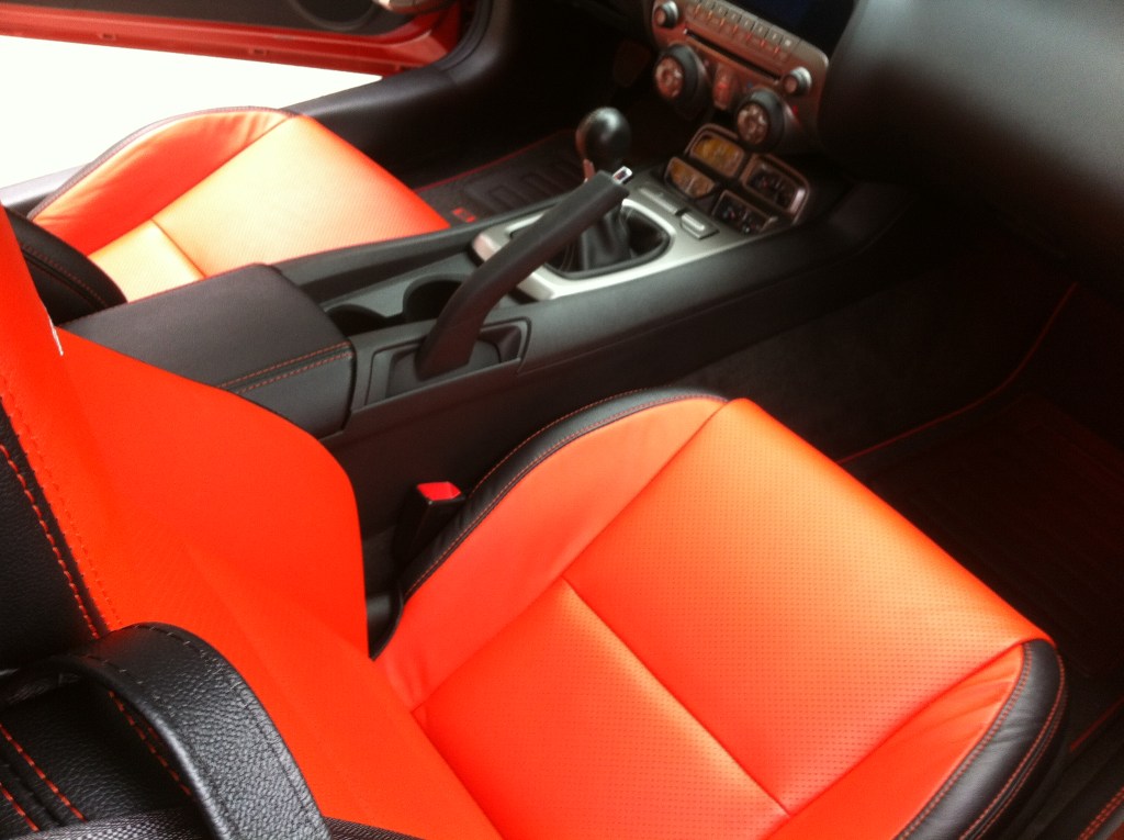 Custom Leather - I wanted the orange interior, but the car came with all black. The orange leather that was used is perforated. This helps to stay cool.