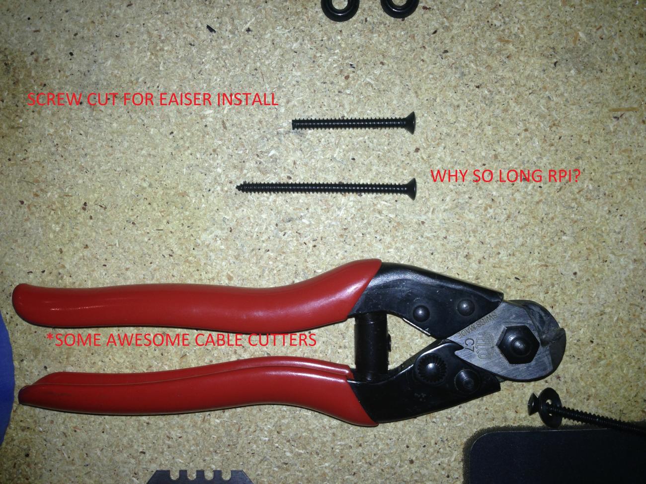 Ditto on trimming the crappy pieces of plastic tubing, and having to cut down the ridiculously long screws. When installed properly, they do their job pretty well (better than I expected). So at least there's that. |