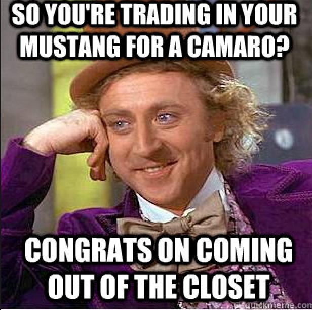 Ok so my girlfriend was with me when I saw this on my phone. I showed it to her. She said, "Typical mustang owner: ugly ass guy with an ugly ass car!"