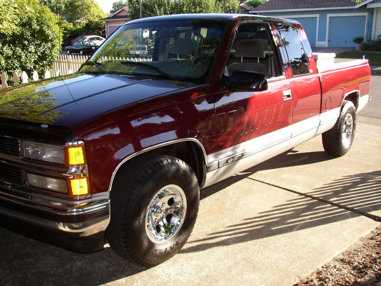 Nice truck as well, looks good for a 93! Mine has performance mods as well, Flowmaster dual exhaust with 4 inch (I think) tips, JBA Headers, and I am getting a Black Bear tune sometime for it. I also have a Sony xPlod sound system, 2 6 inch speakers under the seats, and an amp. Mine is a K1500 Silverado, that's what the title says, and what the original sticker for it says. The 97 and 98 K1500s were called Silverados, while the C1500s are Cheyennes.