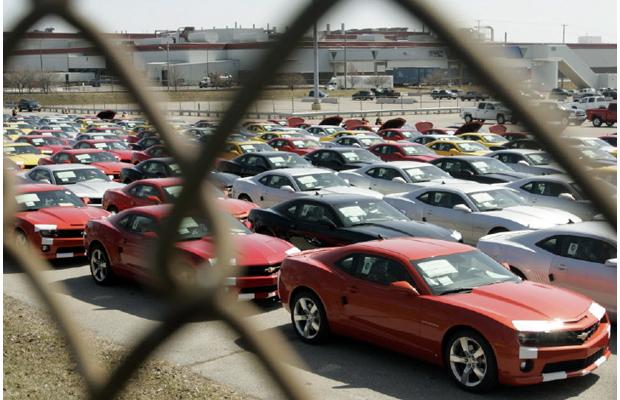 A long, undistinguished line of sedans, SUV's, and minivans.