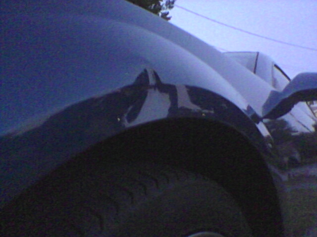 Here's the pic i took of it when i got home. The dent is right on the body line on the drivers front fender. Sorry about the picture quality; it was getting dark. |