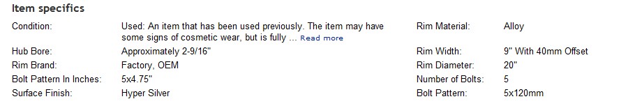 I just bought a slightly used 20" rear rim and here is the info from the tire dealer: