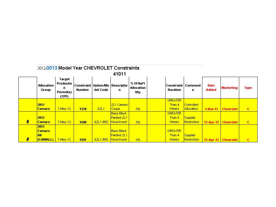 Seems there was a new constraint list posted on gmconnects today. I am not sure how to interpret , but the zl1 is listed :( . Hopefully someone that understands may be able to shed some lite to those waiting.