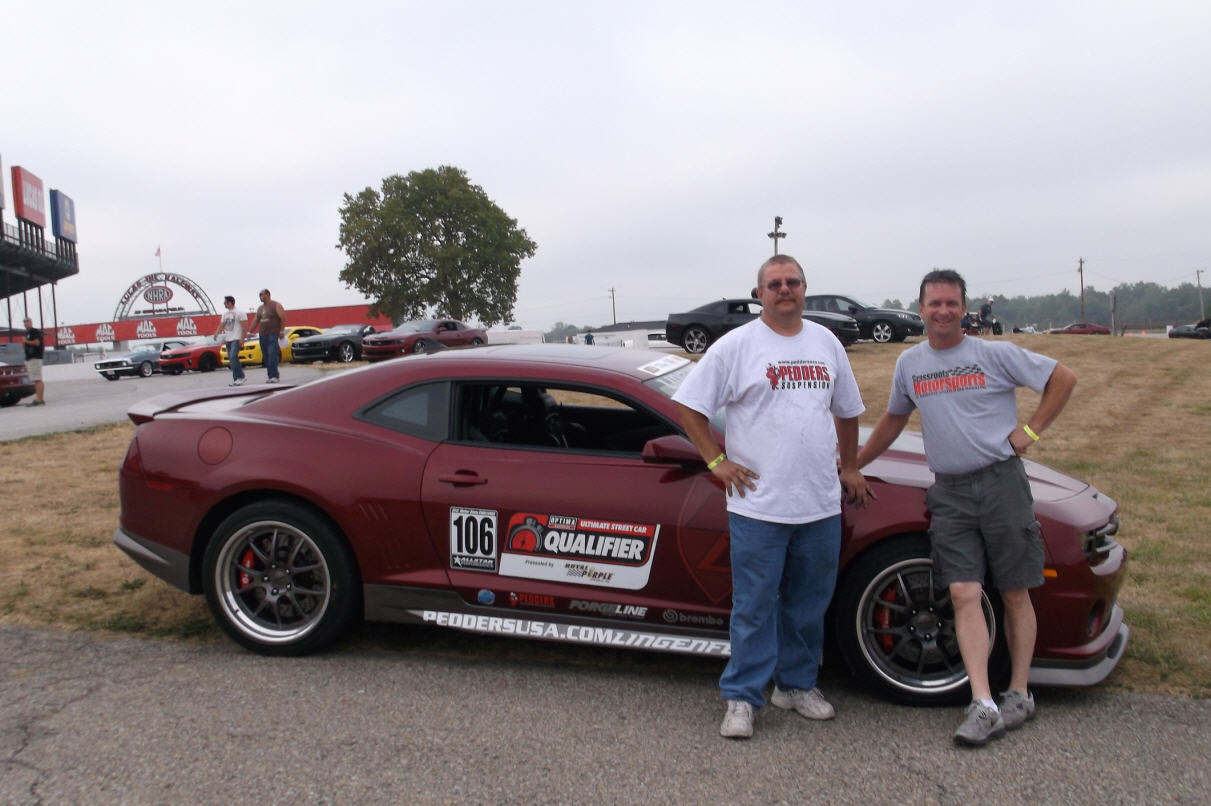 He is an 11 time national SCCA champion and Evolution Driving instructor.. and it shows. He was doing ride-alongs and "YELLING" at people (as he puts it.. actually he was giving advice). Do this.. Don't do that... I have met Danny Popp on a few occasions. If you aspire to be an avid auto crosser, you need to talk to Danny. He will give you advice that is worth it's weight in GOLD! We had a way to describe his driving style. It goes like this. Danny's driving is comparable to driving in a video game.. and he is really MAD at it. He can push a car to it's limits.. but never past the limit. He drives them all at 10/10ths. Here is a picture of the Lingenfelter car. Danny Popp is on the right. Dan Howard ( me ) on the left. |
