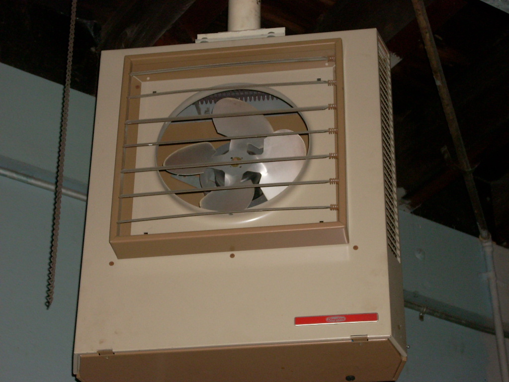 I have a 14x40 garage under the house. Got a electric heater from Home Depot it's around $200.00 if I remember. Hangs from ceiling and plugs into 220 plug. Has a temostat and fan. Works great and cheap to run. I keep at 52 and it heats the garage up 60 in a couple of minutes