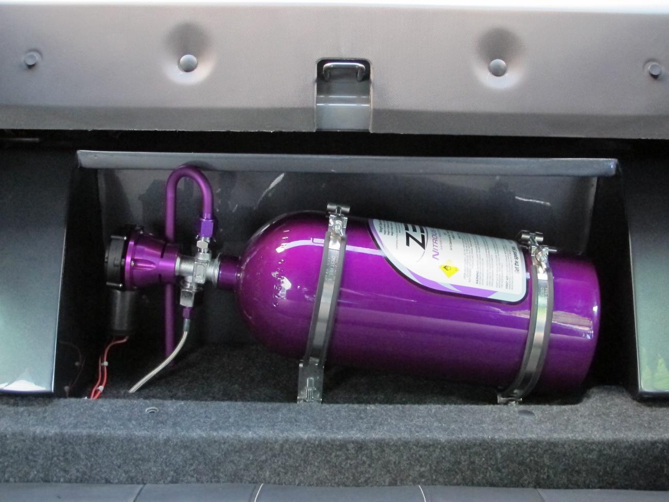 Well I found some time this weekend and finished the sub box. Then threw a few coats of SGM base and clear on it, (it is not quite square in the picture I set it correctly after it was wired in) The Nos bottle is also just set in there, hopefully I can finish that install next weekend.