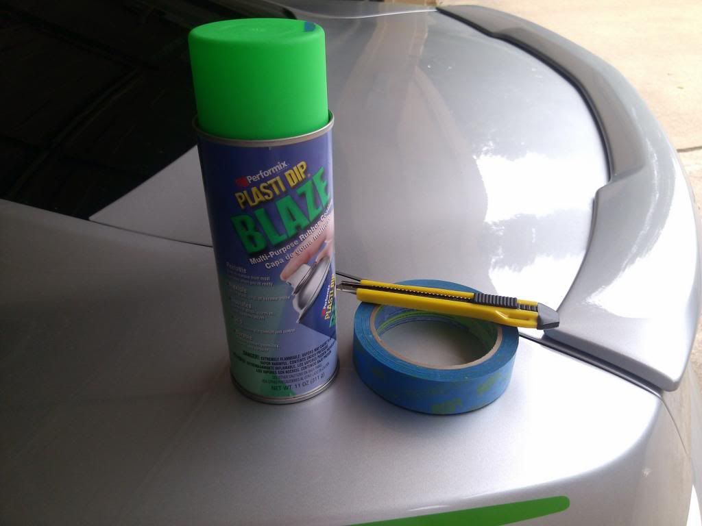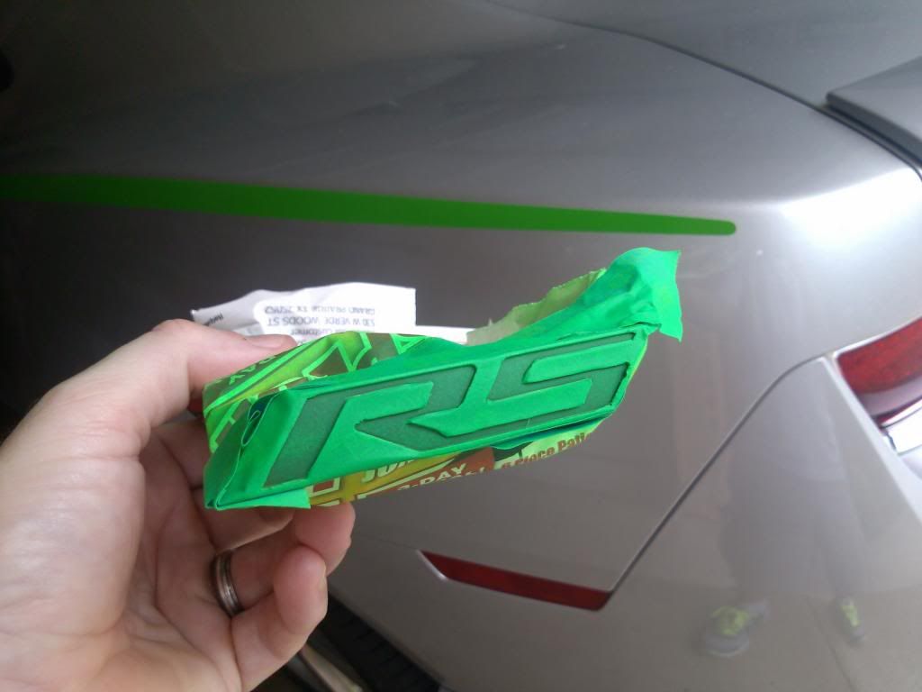 I went with Plastidip Blaze green to match my hood stripes and my javelin stripes. Color is pretty close but not exact. Simple DIY really. Tape off the badge and carefully knife out the part you want to plastidip. Light coats, wait 30 minutes between coats. I ended up doing 5-6 coats and waiting at least an hour before I finally removed the tape. You have to kind of cut the plastidip away from the tape or it will try to come off the badge. The rear symbol/badge I obviously just taped and used paper so as not to get any over spray on the car. The front symbol badge I removed from the car. Not quite finished with the front badge in these pictures but you get the idea. ![]() ![]()