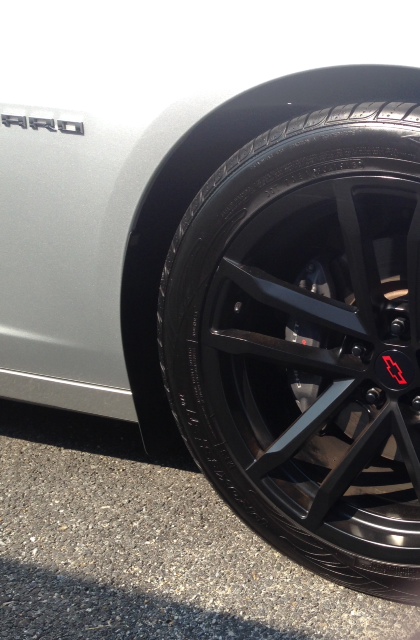 Ya, I thought those were ZL1 wheels. Im not sure if they are replicas or the real deal. The bow ties are red on the front, back, and wheels. Also has SS floor/trunk mats. The tires are 275 front and 295 rear.