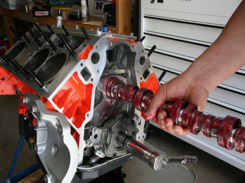 I think I got the pan as far down as I can. The cam was stuck good. I had to use a wrench in between the water pump bolts to turn it after i got it stuck. now It does rotate with a little resistance but like the diy said thats how it should. The stock cam spun with no effort at all. the lifers are still up there. If I get everything back together tomorrow Ill leave the coil packs unplugged and crank it over for 30sec or so to build some pressure before I fire it. I still have to put the pushrods and rockers back on. With only useing oil will it be ok if i dont fire it until friday or saturday if I have to? The diy should just say to use assembly lube.