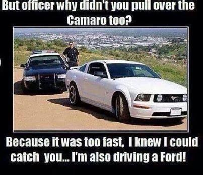 I have a buddy at work that has a new 5.0 and I have a 2015 2SS/RS, we go back and forth (all in good fun) with pictures making fun of each others cars. Here are a few of my favorite memes clowning the mustang. Show me some of your favorites. I need some more material!!