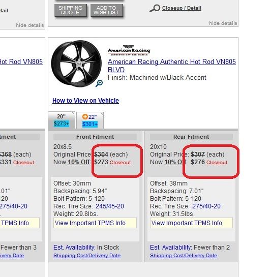 I take credit card in hand, and go to Tire rack to buy the wheels I want....and they are on closeout? What's worse, there is less than 2 rears?