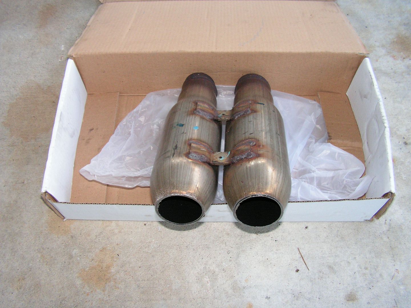 I replaced the stock resonators... ![]() ![]() with a second set of AR25s (hence the "X2" added to the title). See below: ![]() ![]() Now comes the interesting part. When we started the car after the installation, it was running like dog poop! I thought "Oh great! This suxs!" Here's a vid of that moment.. I decided to go ahead and give the system a little time so I drove it around on a few errands in town. After about 70 miles and 7-8 key cycles (and 4 passes at the track last night), it's better than ever! Check this out: The tone is a bit more mellow and the drone under load is mostly still there but moved up in the rev range. Up above where you run during "normal" driving. You can still "growl" at passing Crustangs but it's quiet in the neighborhood! Just what I was hoping for! I do believe the ECU takes a bit of driving between mods to get "acclimate" to the changes. I believe this mod shows that as a fact very clearly. Here's the track video: Here's a little "in cockpit" vid I took coming home from the track. If you can keep your foot out of the gas, it's as quiet as the OEM exhaust. As you can see, I have a problem with that! (To be added when upload in HD is completed ) I also did some data logging but I'm still reviewing the data and trying to get it posted as "useful" data. More to follow.