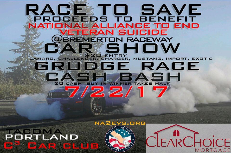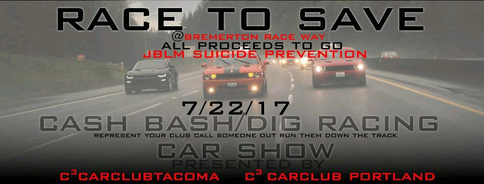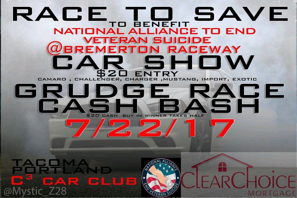 Excited to announce the first C3 Car Club Pacific NW Event at Bremerton raceway! This is going to be huge, you won't want to miss it. $20 cash bash buy in for the car show, $45 + $10 for NHRA Number dig racing and more. All money raised to be donated to The Joint Base Lewis McChord (Fort Lewis WA) Suicide Prevention, all different car types are welcome you don't have to have a muscle car to participate. DM @c3carclubtacoma or @c3carclubportlan on instagram or Facebook for more info. I will be posting more info as the date gets closer.