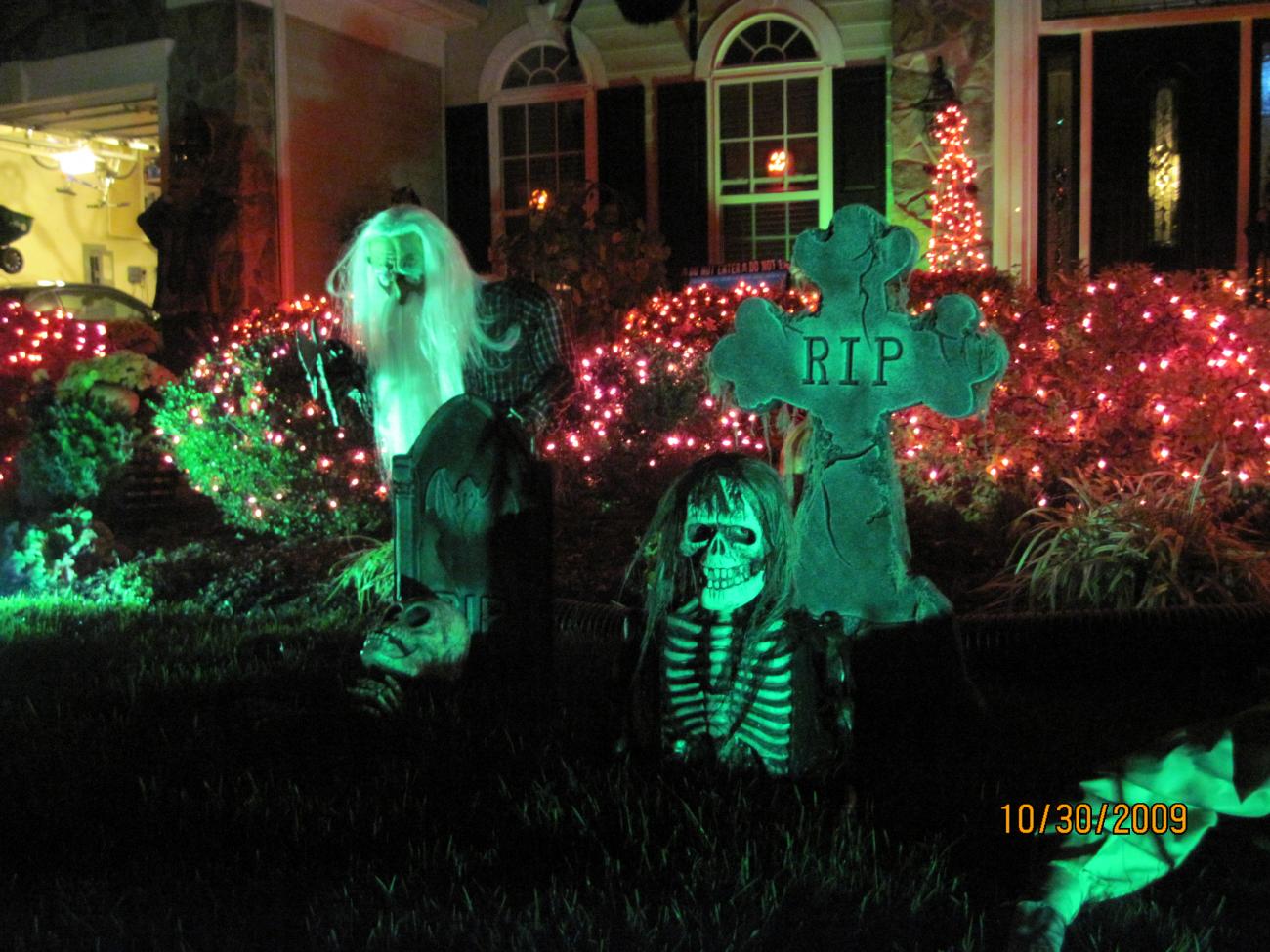 Once all the fog machines are going and I put the dry ice in the cauldron...it will look even better. Filtering the fog through a cooler filled with ice keeps the fog over the entire lawn.