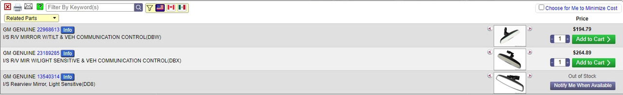 It's always parked in the garage when not in use, and I've never seen a mirror this new do this before. Grrr. 2,991 miles and shit's falling apart. Being one not to take parts falling apart, I started looking for a replacement. It's gone through about 3 supersessions on the part number. In fact, depending on options, I found out there's 3 different part numbers for mirrors. Rockauto.com sells them. ![]() So which one do I need? So I look up my build manifest and search for the RPOs starting with D. I have RPO DBX, self dimming, heated mirrors, and all that. Thus, of course it's the most expensive one, like everything else on the car. P/N 23189285. Rockauto has the mirror the cheapest anywhere I can find after the 5% discount and only 8.99 shipping with USPS. It's like speckled. But behind the glass. Hard to take a picture of, but you can see it straight on. ![]() Keep an eye out folks. I have no idea if you can get these re-silvered or not.