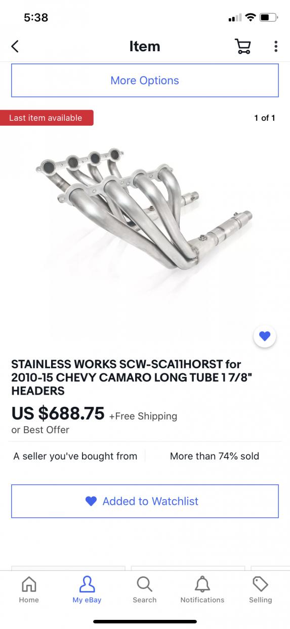 The car is very nice. Factory ground effects, now ZL1 front end with the ground effects painted, and a high rise spoiler. You don't see many high rise spoilers and I personally don't get why not. They were a cool feature and a bit of a throwback to first gen Trans Ams IMO. That thing should be handling pretty well here with the BMR kit. As for the SW headers, that's a STEAL of a deal! I thought for sure you were going to say Stainless Power, but that's awesome! You're going to flip the first time you turn the car on, I know I did when I installed my Kooks. Keep on enjoying your ride and don't forget to update here. Happy modding!