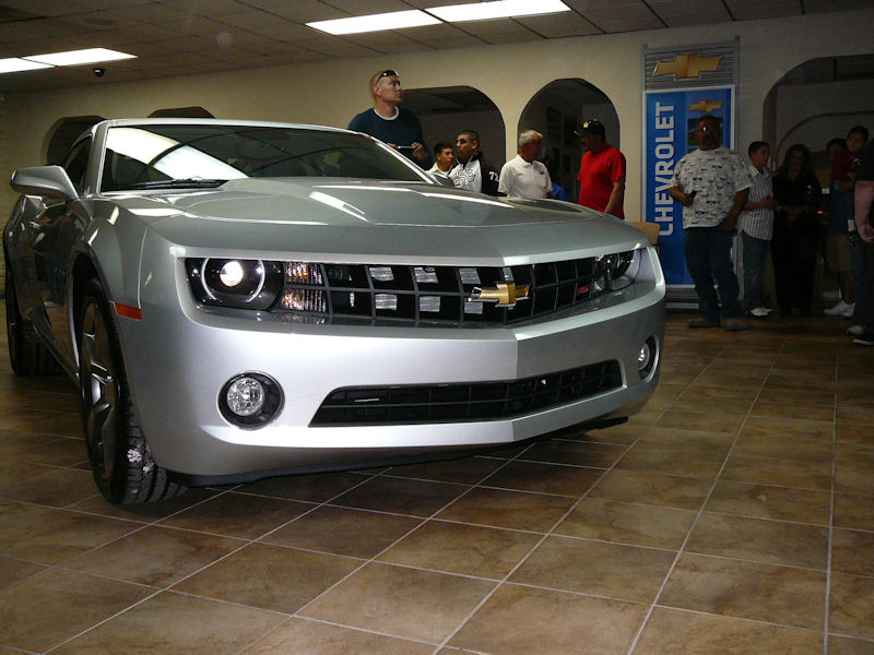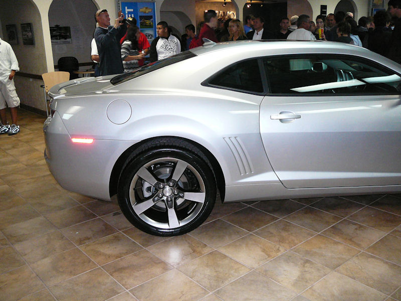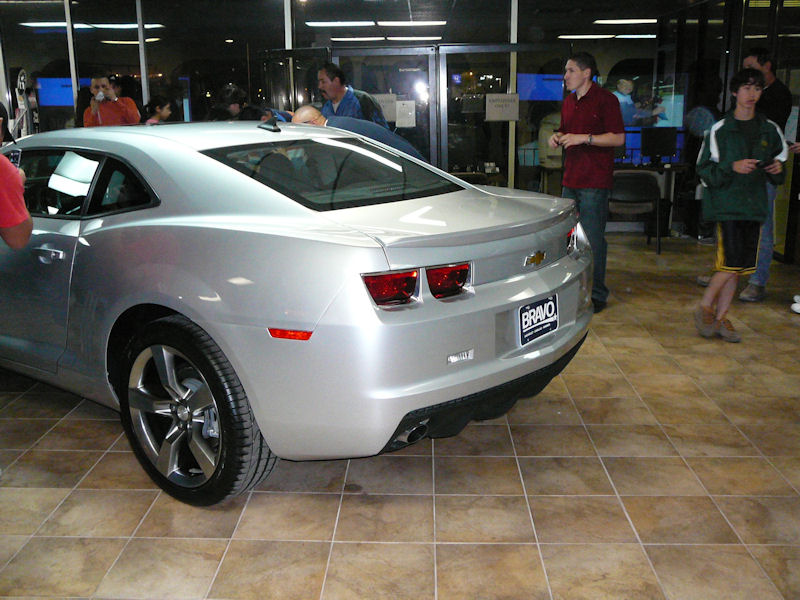Hello, this is my first post here, but I've been visiting for a long time now. Anyway, the dealer I ordered from (number 1) had a grand re-opening/Camaro unveiling party. They had a Victory Red 1SS and a Silver Ice Metallic 2LT/RS. This was the first time I finally got to lay eyes on the car. It's amazing in person, I can't wait. The pics are not of great quality, but I wanted to give back to the community a little bit, even though they don't show anything new or exciting.