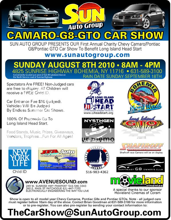 We will be meeting up at Bellmore train station on Sunrise hwy for the cruise to the show. We will be leaving at 715 am sharp. Along the way we will be meeting up with the suffolk crew around Atlantic chevy on sunrise details will be posted later on. If not interested in the cruise or cant make it for what ever reason feel free to just meet us at the show