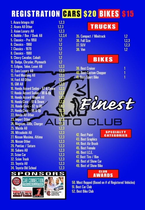 CT's Finest Auto Club in conjunction with Porter and Chester Institute present their 1st Annual Car Show Sunday Aug 29 from 10am-5pm with registration stopping at 1pm...im going...who else from NEC5 wants to win another club award?