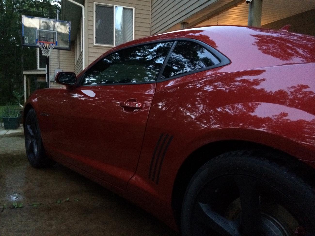 Some Car Details: 2013 Camaro 2SS/RS L99 in Crystal Red TintCoat Mods- • 30% Tint • Ziebart Rust Proof Package • Installed Black Vinyl Gill Stripes • Painted Engine Cover • Painted Fuse Box Cover • Installed a New, Custom Painted Strut Bar • Ordered Custom Painted Bow ties • Blacked Out Lower Lip • Installed ZL1 Grille • Blacked Out Rear Tail Light Bezels • Installed Stripes • Installed "CAMARO SS" Letters on Fromt Windshield • Removed Stock Resonators & installed Glasspacks • Plasti-Dipped Wheels And Gas Cap |