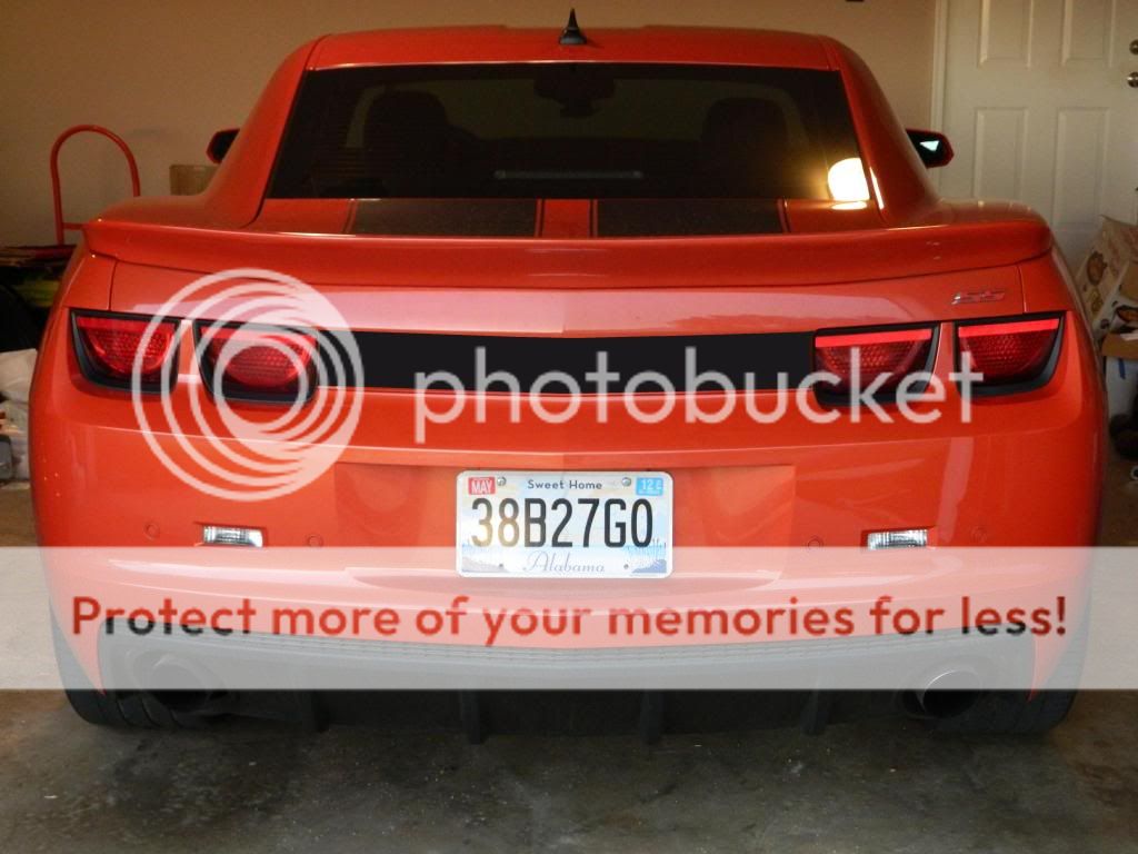 So I got tired of the chrome bezels around my tail lights, and decided to paint them black. I think it looks a lot better now. I'm also planning on having my stripes painted on when I get my Sinister hood, and I'm thinking about having the portion of the trunk lid between the tail lights painted black also, to break up the huge chunk of orange that is the rear end of my car. When I installed my Heritage Grille, I left off the bowtie emblem from the grille, because I thought it looked a little cleaner, and I like it without the bowtie. I did put the SS emblem on the grille, though, but the bowtie, to me, was just too much, and I prefer the Heritage Grille without it. Anyway, because of that, I'm trying to decide if I want to do a blackout strip between my tail lights either with, or without the bowtie, or if I should even do the blackout strip.