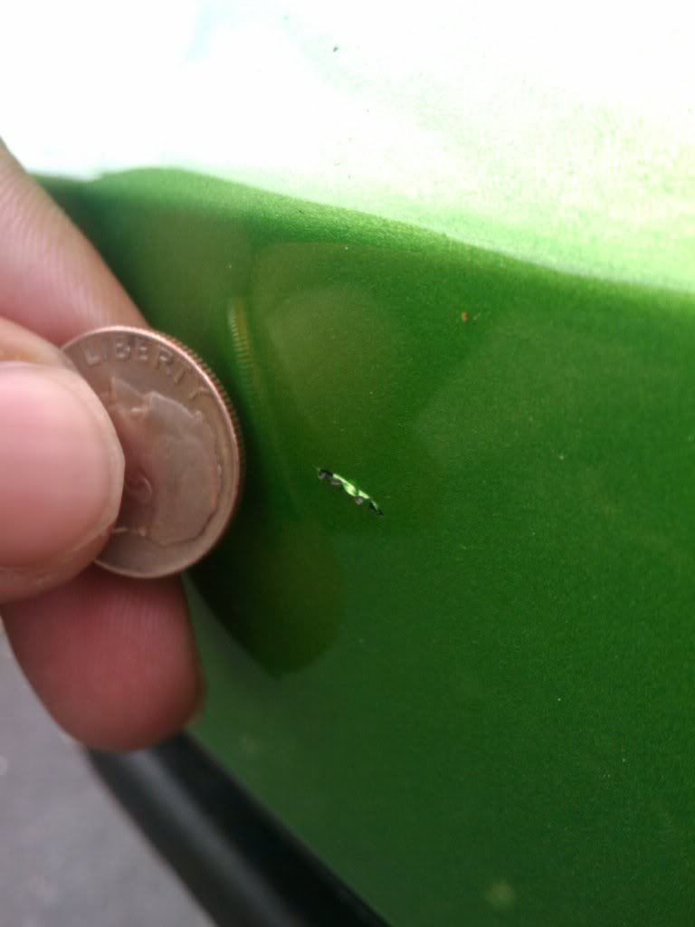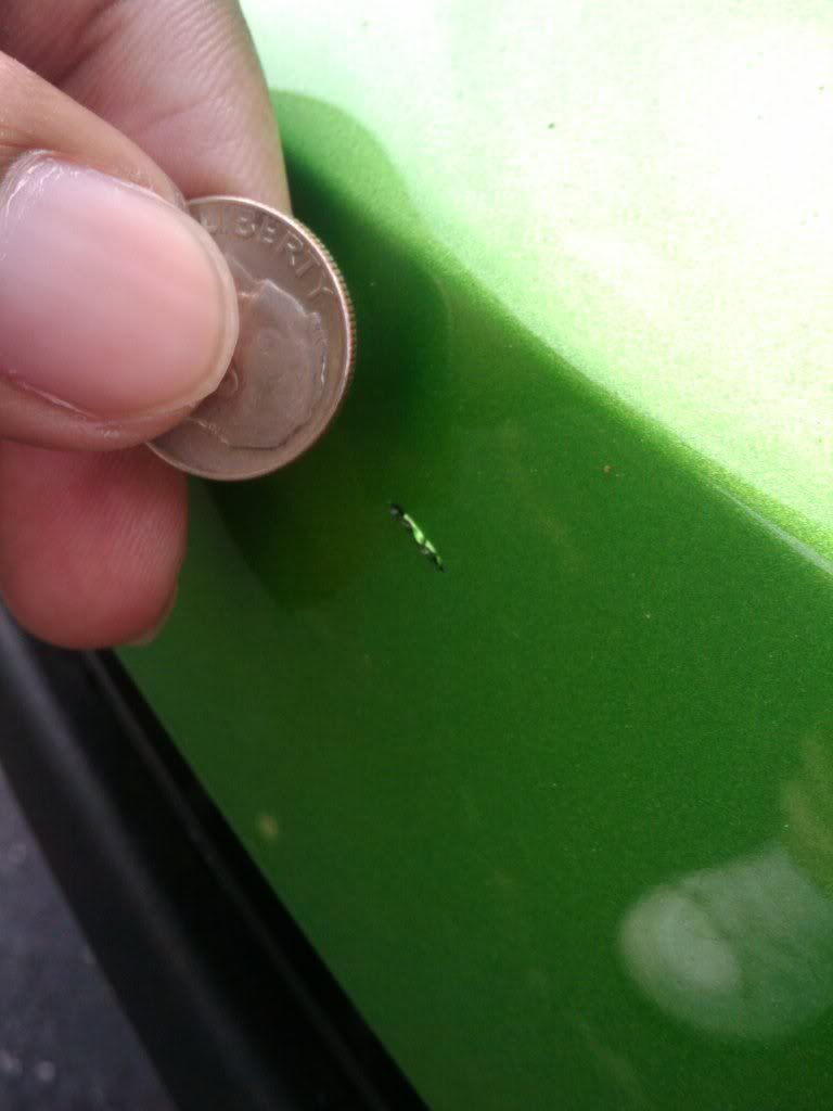 ::lurks in thread to see if anyone has quick fixes:: It's not a chip, it's a peel. The paint is just there, just pushed aside, so I dunno how to deal with it.