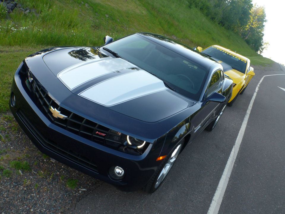 My girlfriend recently bought her camaro 2 days ago, and I bought mine in March so we decided to go out for a drive and take pictures with both of our Camaros together. Some turned out pretty neat so i'd thought i'd share. Here they are