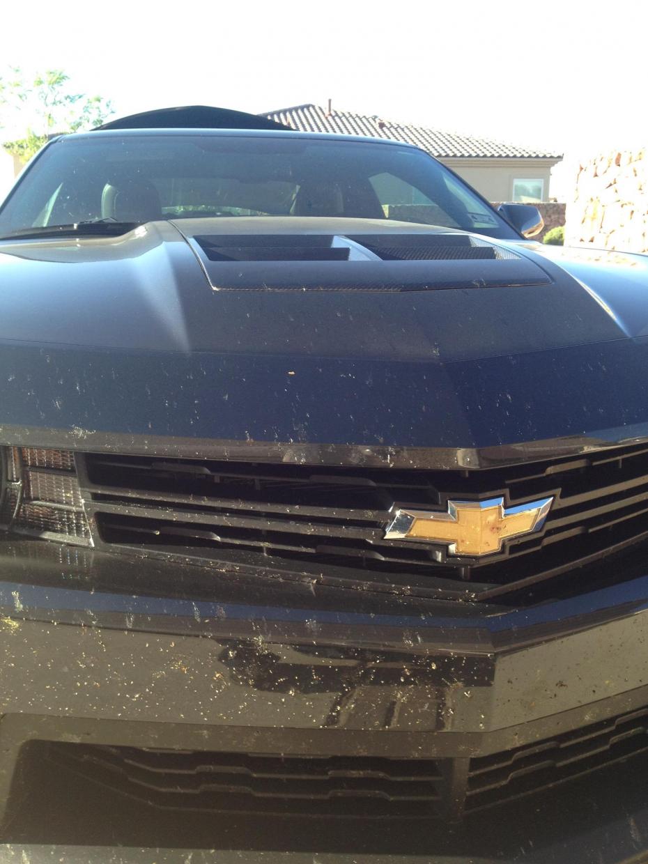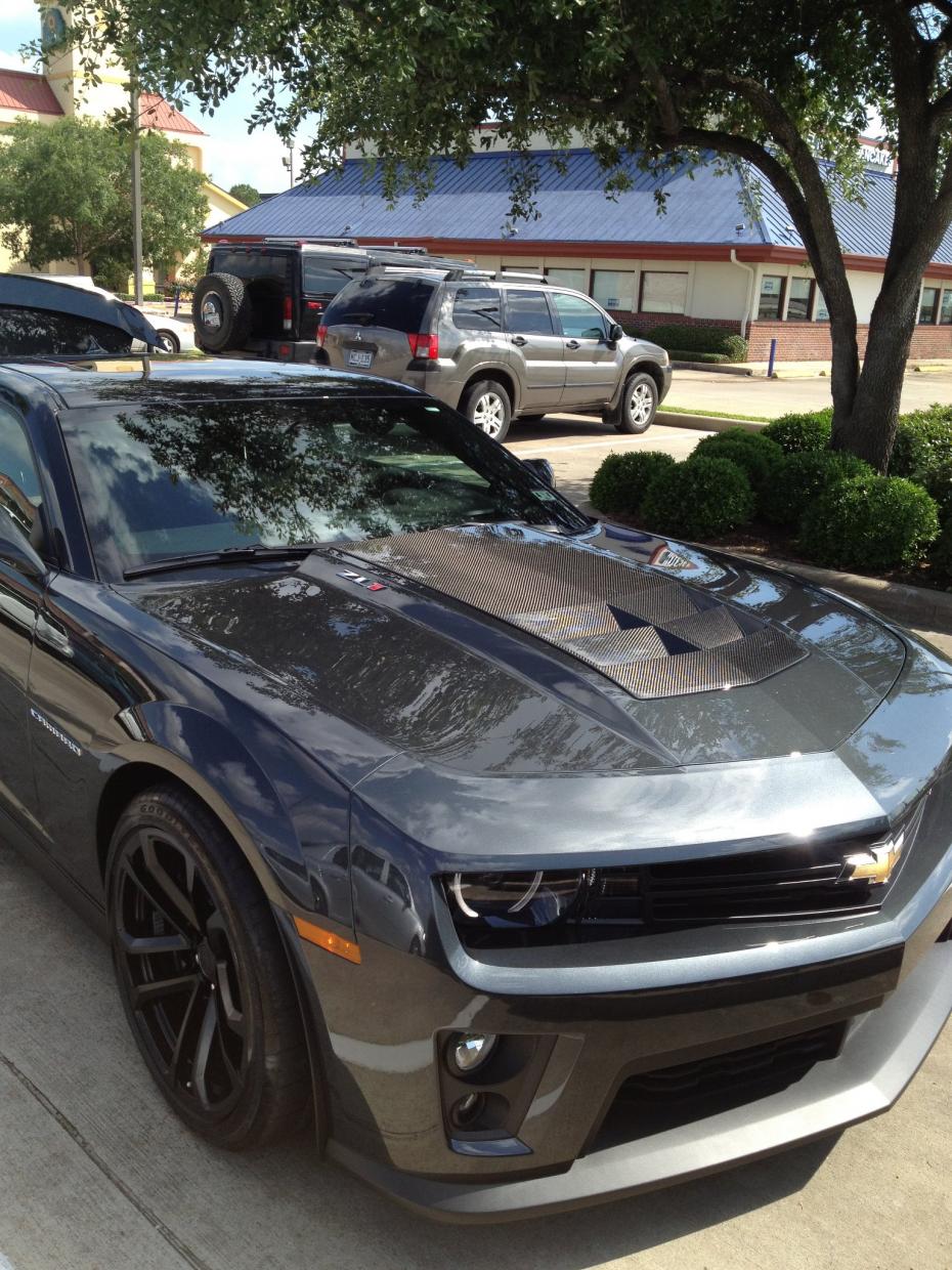 we flew out saturday morning and arrived in houston at 1140 am. a car was sent to pick us up, about 40 minutes away from the dealership. signed the papers and we were on our way! one of the smoothest transactions i've ever had! We left houston at 5am sunday and arrived at 3pm, 11 hour drive with the time difference. here are a couple pics, theyre attachments, as i'm not sure any other way. after its washed and i add a couple mods, ill post more. as many have said, pictures do not do this vehicle justice, it is simply awesome in person. the first thing our salesman did as we walked up was remote start it and i was just in awe. the zl1 is one sexy beast! the bottom pic is after the drive, covered in bugs! please dont facepalm me, haha by the way, dealership also ordered the premium floor mats with camaro on them as well as the car cover, gray with black stripes, im going to sell them if anyone is interested.