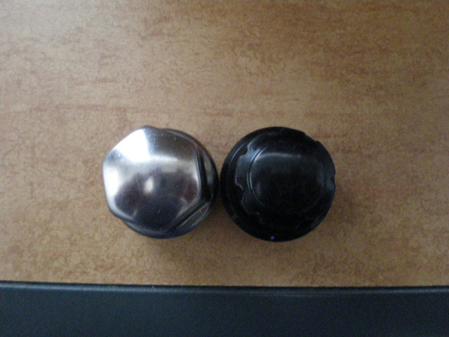 I found these black rubber covers. They kind of look like big thimbles and they just slide over the nuts. I have never lost one or had them fall off. I say it is the cheapest and easiest way (plus they look great)!!