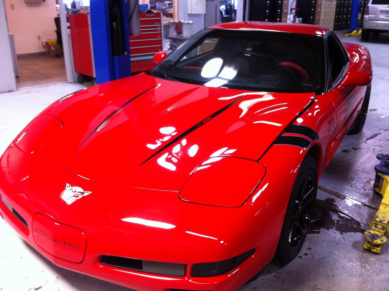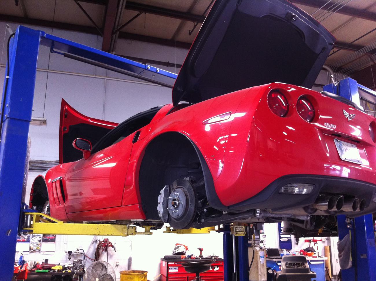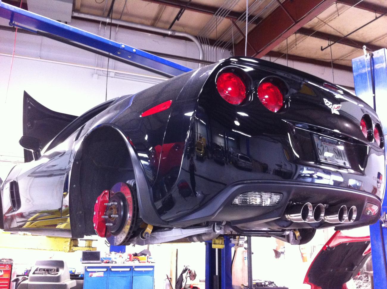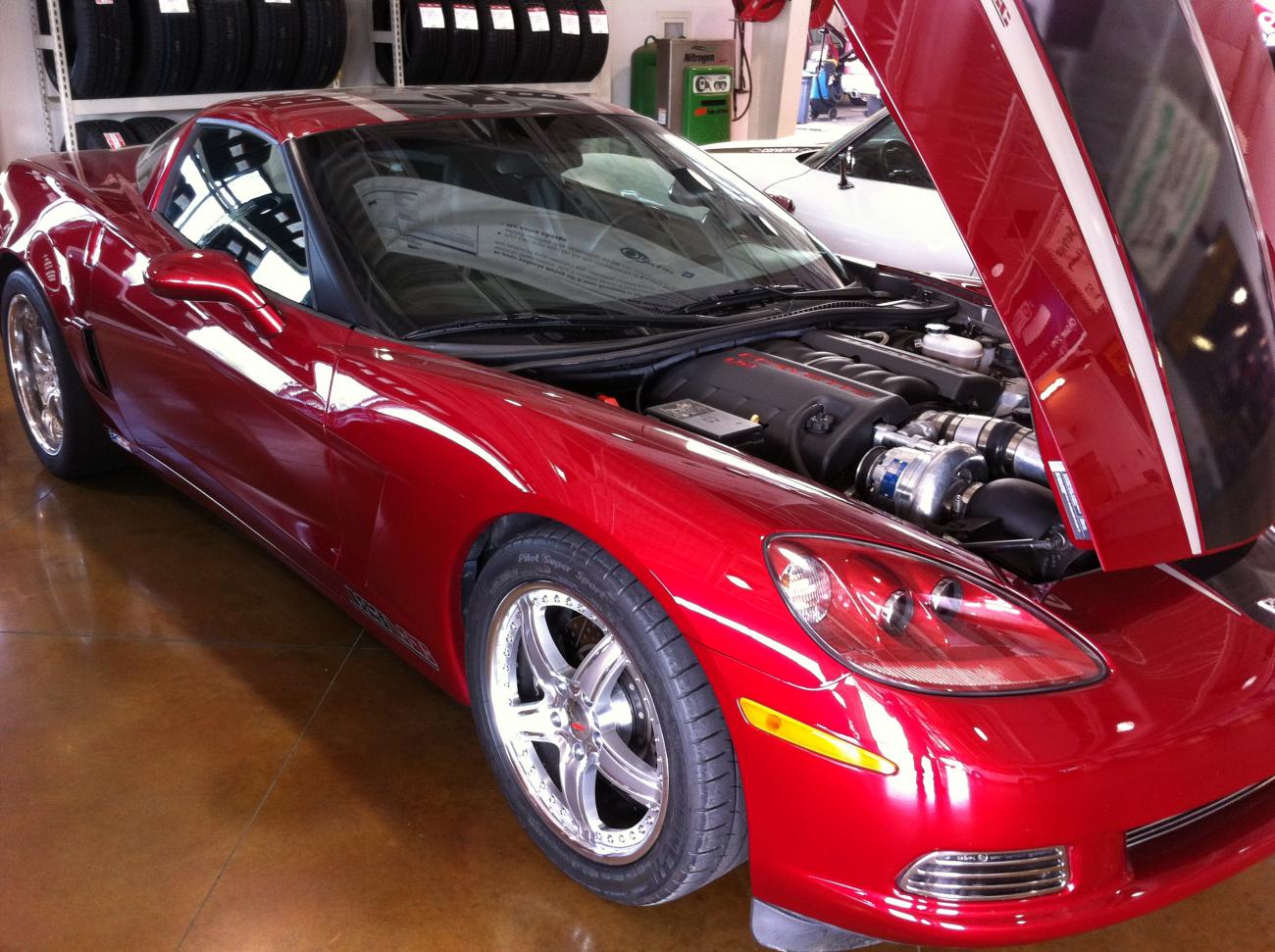 The red GS Vette is getting a 416, twin turbo setup, yank converter, and some dyno tune love. The Marron LS3 vette is equipped with a Vortech Centri kit, injectors, cam, yank 3200, and our custom tuning. 625rwhp through zr1 manifolds and cats. The Black Z06 on the rack is getting a Forged rods/pistons, a GPI custom grind cam, already has supporting mods, custom tuning and it will have a good amount of nitrous on it. The red 03 Z06 is getting a cam, heads, udp, injectors, fast92, ls2 tb, vararam, lts, corsa exhaust, yella terra rockers, custom tuning. Of couse I had to throw Gretchengotgrowls TT v6 car in here, its getting some forged goodies custom made, and 10s are coming in a v6.....easily too. The Ferrari F430.....lol its just a cool car in for repairs but I thought Id post it anyhow. |