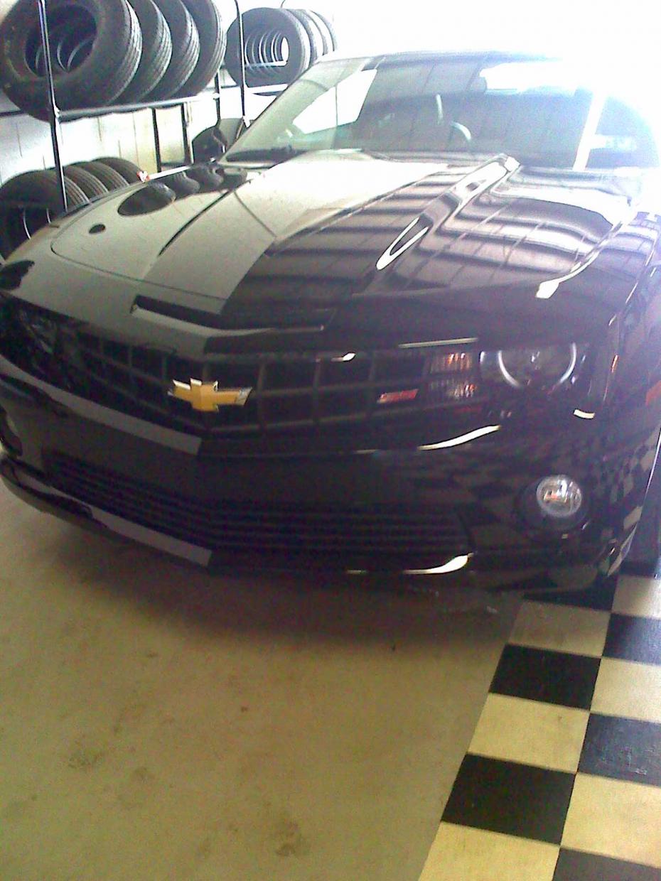 I talked to my salesman about two weeks ago and asked if he would give me a call when an SS arrives to check it out before ordering. Well, got the call today. SS was orange and a Silver V6 was also sitting there. Then two more were just being delivered, a 2SS Black and a Red V6. I was told the three (Black, Orange and Silver) were sold but all three buyers might not take them???? The Red V6 was sitting outside in the parking lot and was up for sale. I wanted to order a 2SS IBM with a Sunroof, Automatic, White Stripes and with Polish Alum. Rims but I told the salesman I would take the 2SS Black Camaro today if it’s up for sale. He said the new buyer is having a problem with financing and I'm next in line to buy it. But then the GM said in so many works to the salesman he'll want up to $3k over MSRP if the other person doesn't take it. I told the salesman I won't pay over invoice. It's not exactly what I wanted to order. It's nice but I don't think it worth paying over MSRP. I owned several other Chevy’s in the past. So the bottom line is their going to let me know by tomorrow if their going to sell it to me for MSRP. Anyway, here some pics from my cell phone. Obviously the camera isn’t the greatest.