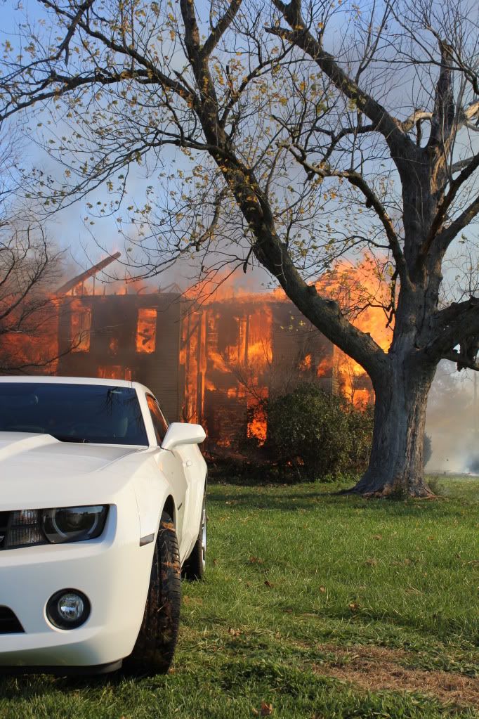 Not going into too much detail, basically it was an old house beyound repair. The fire department was called to see if it was possible to burn the house down. They did a bunch of training exercises in it before the actual burn. Was cool, because I got to go inside a burning house and see how fast fire could move. Tell you what, it was extremely scary to see how fast fire spread and climbed through the wall of the house. After the fire got away from them they just let it go, so I took the opportunity to snap a few shots. |