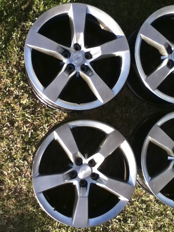 I'm selling a full set of 20s Midnight Silver rims (rims only, no tires, lug nuts or sensors). I bought them used but never used them myself. I bought them to put on my 2011 Camaro but the dealership bought that car back and I bought a 2013 Camaro RS with midnight silver rims so I don't need these anymore. I'm selling them for the price I bought them $450. One of the rims has road rash on it. You can see it in the picture. I took a picture of each rim as well.