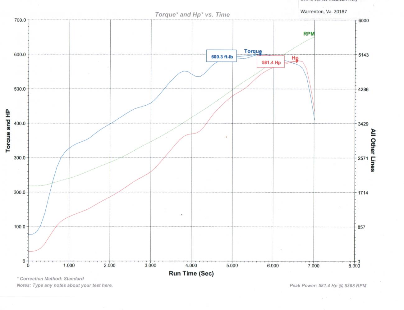 Her is our Baseline from build so far at only 5lbs boost and 12 degree timing with out our meth kit installed yet a pretty good start will post final results later in week hope to see 620 plus at 7lbs