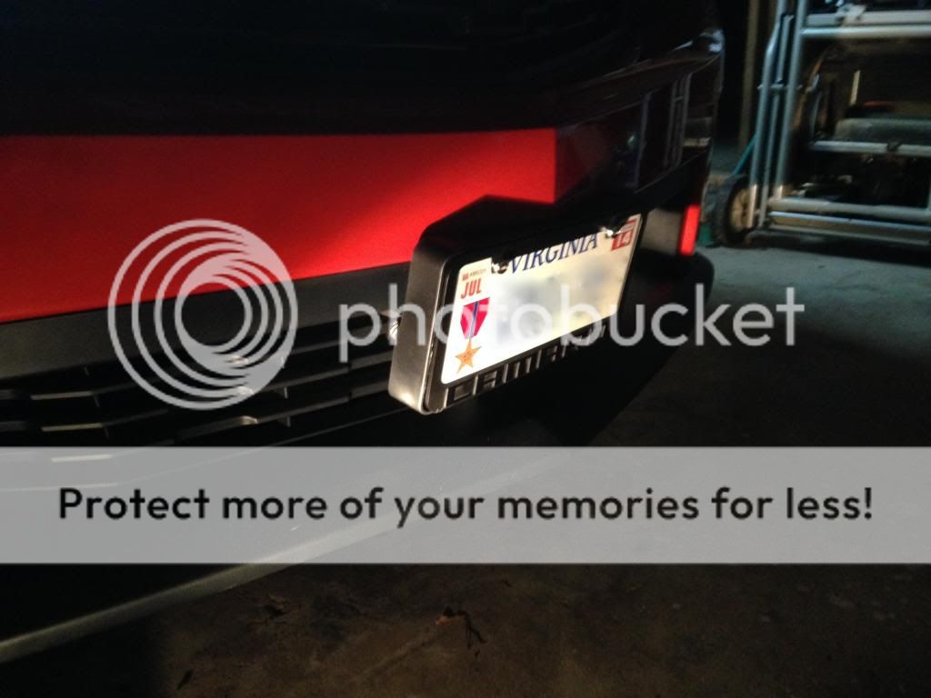 Installed Eliminator no-drill front license plate bracket. Very easy install. Small plates mount to the lower grill, then you simply clip the bracket on the plates. Tightness of the clips is adjustable and it feels very secure. Can remove in 2 seconds for shows, etc. Anyone interested can find it at this website http://www.eliminatorbracket.com/