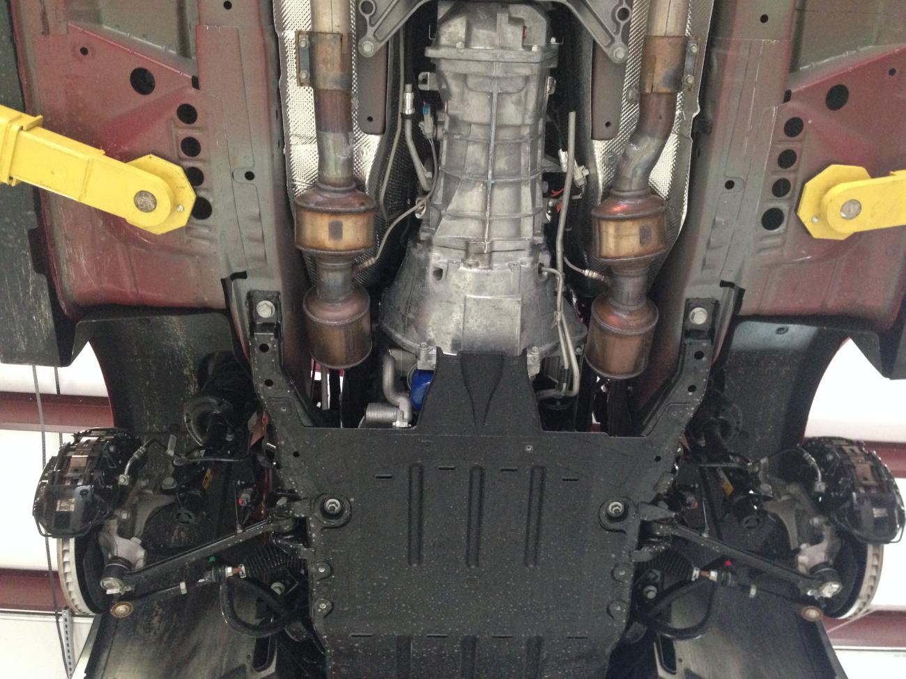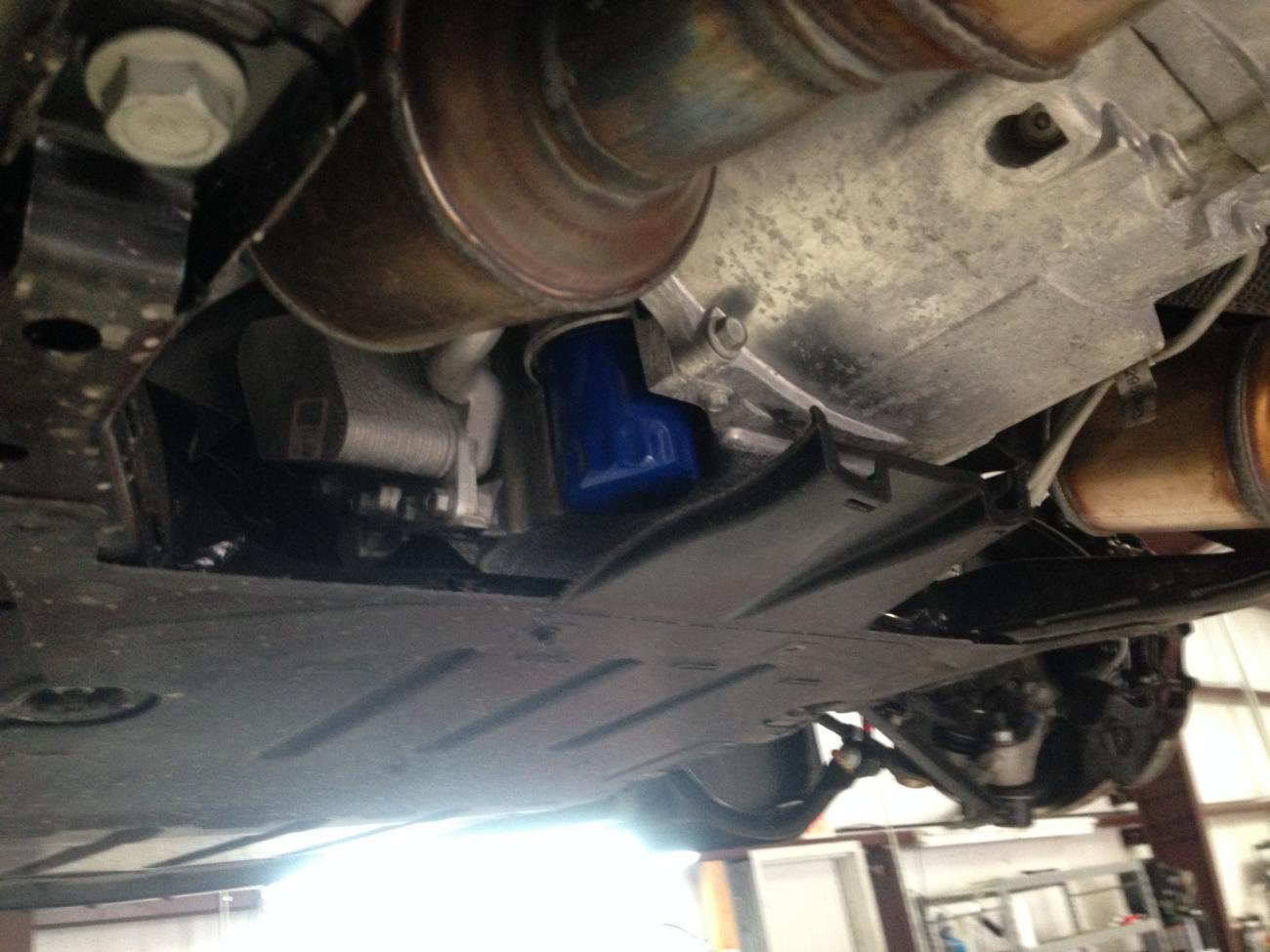 Here is what my 2012 belly pan looks like during an oil change. It has some reflective heat rap applied in the area that is cut away on the other belly pan images.