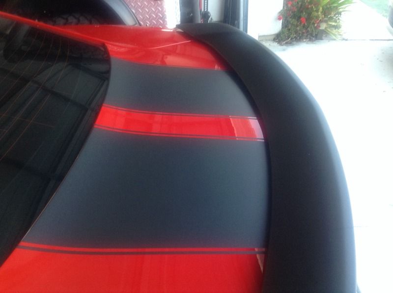 Thanks, picture you requested in your PM. I just ran the stripe under the new flat black spoiler. Trying to really keep the rear simple.