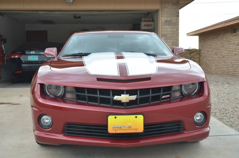 Im now 22 and back in the states stationed in southern NM. I was "browsing" the local dealers web page and happened across a 2010 Camaro 2SS/RS in Red Jewel TIntcoat. I told my wife i was going to check it out after work and if i like it we will see what happens. The dealer had me test drive it first.....bad idea. (really an awesome idea) I left that night with a new addition to my story. It had a few cosmetic upgrades such as painted engine cover and a few billet caps under the hood. It also had a skip shift eliminator and muffler delete. Here are a few pics of the night i brought it home.