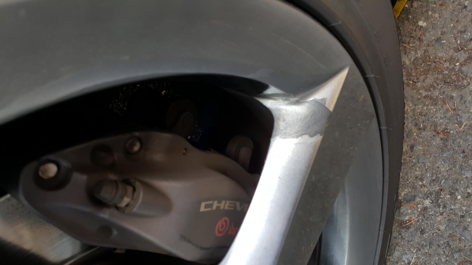 I have issues with mine as well, I purchased the car in 13, although it is a 12. The wheel coating is chipping on the leading edge of all the wheels. I did take it to the dealer this week and the service manager said he would "talk to someone at GM' about it. Meaning he probably cares less about my problem and Ill have to solve it myself.