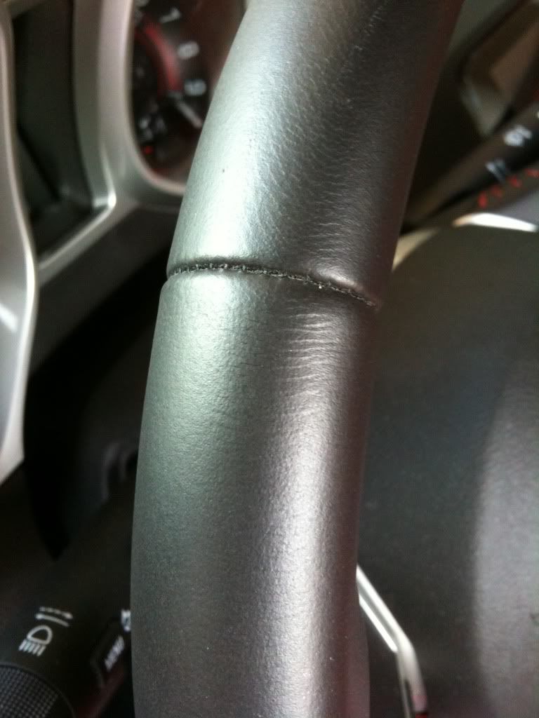 When steering wheel #2 was installed, I showed the service adviser the funky pattern in the leather that had caused the issue in steering wheel #1.