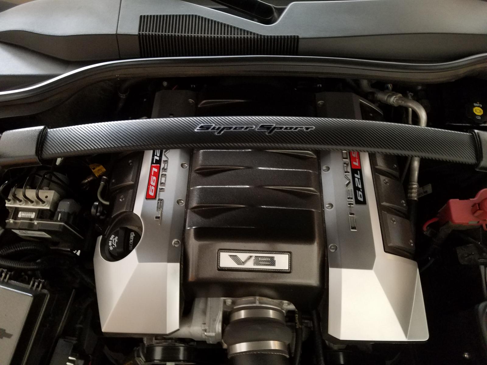 Custom TSP Stage 2 Cam/GPI intake Ported Rod Mod /VARARAM CAI/Mishimoto Catch Can/1 LE front & rear sway bars/ engine cover/fuse box custom painted, strut tower brace, Texas Speed LT, Hi Flo Cats, Magnum Tru-X pipe, NGK Spark Plugs, PCM Spark Plug Wire, Painted Calipers, CF Spoiler w/wicker bill. |