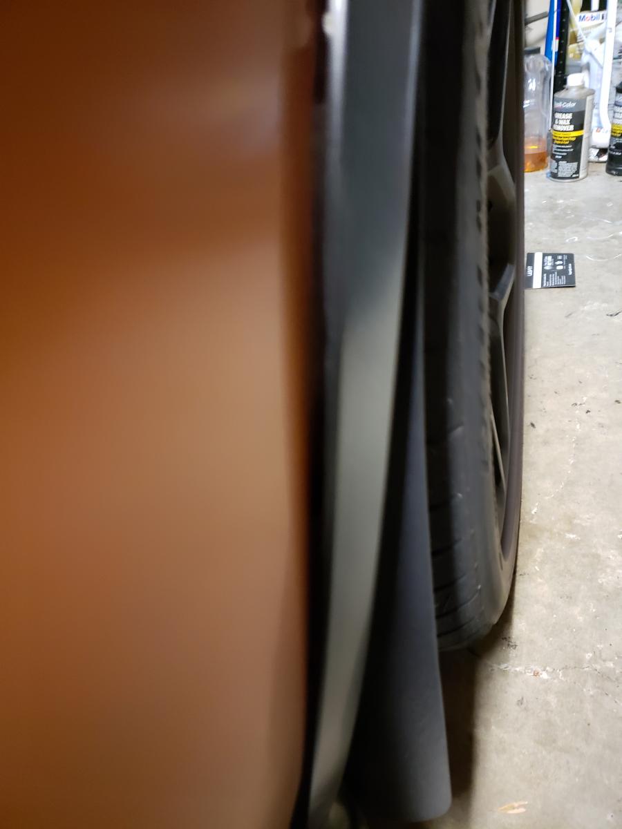 Yeah, your thread was the one I was looking at quite a bit through the whole process. I did have them wrap mine, but the surface between the flare and fender was left as-is (except on the fender itself). Separation is pretty bad, as you can see. And that's with 3M VHB tape.