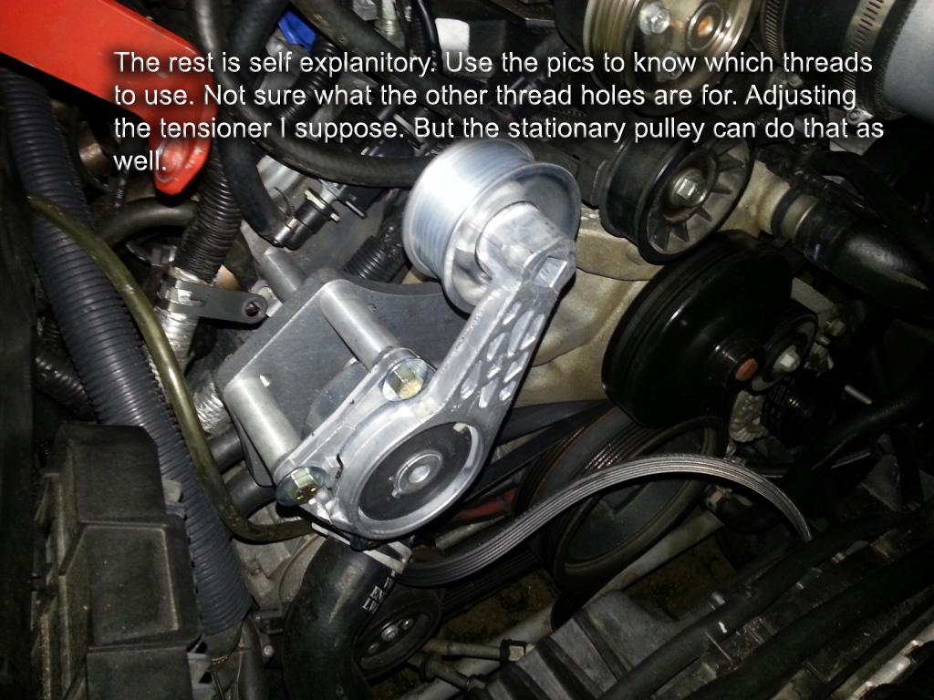Anyway........ When I first looked at it it looked kind of like it might not be very solid. ![]() After installing it there was no doubt this thing is stout. WAY much more so than the stock tensioner. No more belt slippage here. ![]() (In the video I say 'Adjust the tensioner' but what I mean is 'RELEASE the tensioner'.) Last edited by PQ; 07-23-2012 at 11:56 AM. |