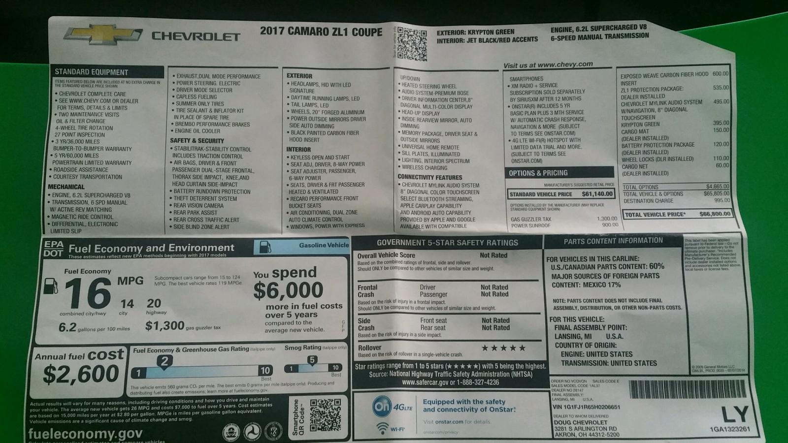 2017 Krypton Green ZL1 Camaro