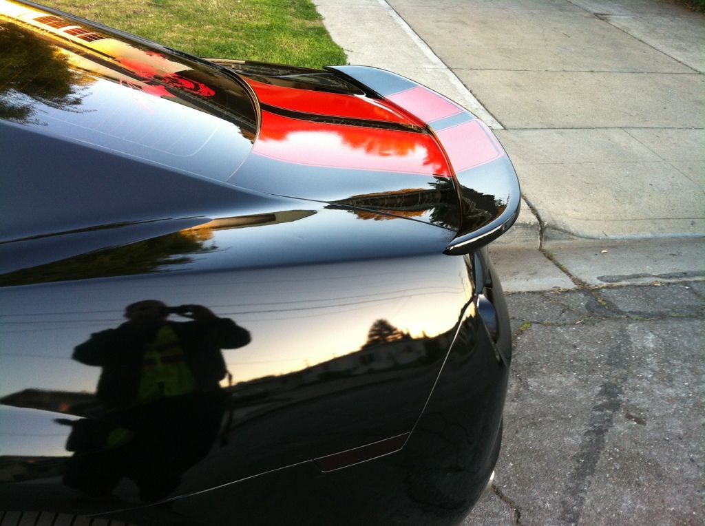Looks great! That's the exact same hood and spoiler I want for my car (minus the stripes). It's nice to see what they would look like on a black car.